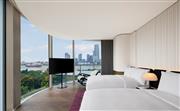 面積達 77 平方米,提供更寬敞舒適的入住體驗。設有一間配備兩張大床的臥室、一個帶餐桌的獨立客廳,以及 私人陽臺,可飽覽黃浦江的迷人景致。優雅的家具與現代裝飾相得益彰,營造出精致而愜意的氛圍。